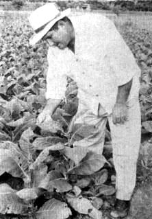 PHOTO CAPTION - A Farmer glance at big tobacco leafs