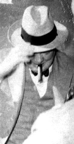 PHOTO CAPTION - Winston Churchill, Great Britain ex Prime Minister, smokes big Cuban cigars.  The photo shows Sir Winston as he arrived to Cuba a few years ago.  He had been in Cuba, as a newspaper reporter, during the Cuban-American-Spanish War.  Here he learns to taste the good Cuban cigars.  In his honor, Cuban cigar manufactures named "Churchills" a fine-big shaped special Cuban cigar.